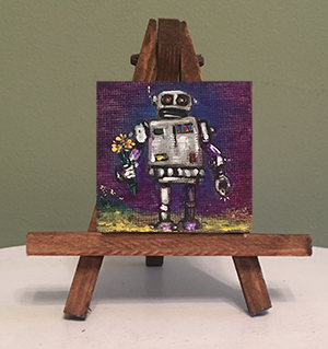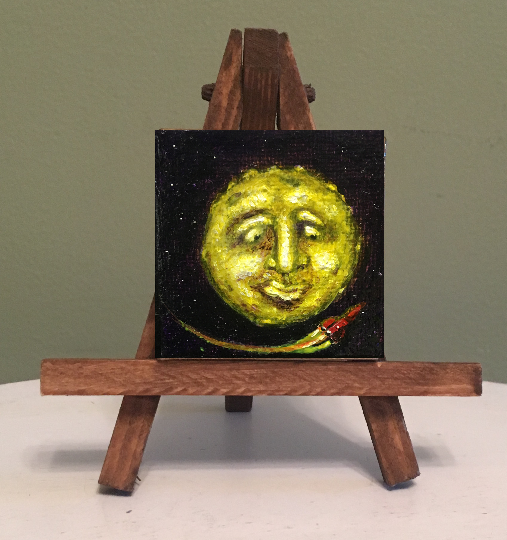 This is a 3 inch by 3 inch and hand painted - without the easel.