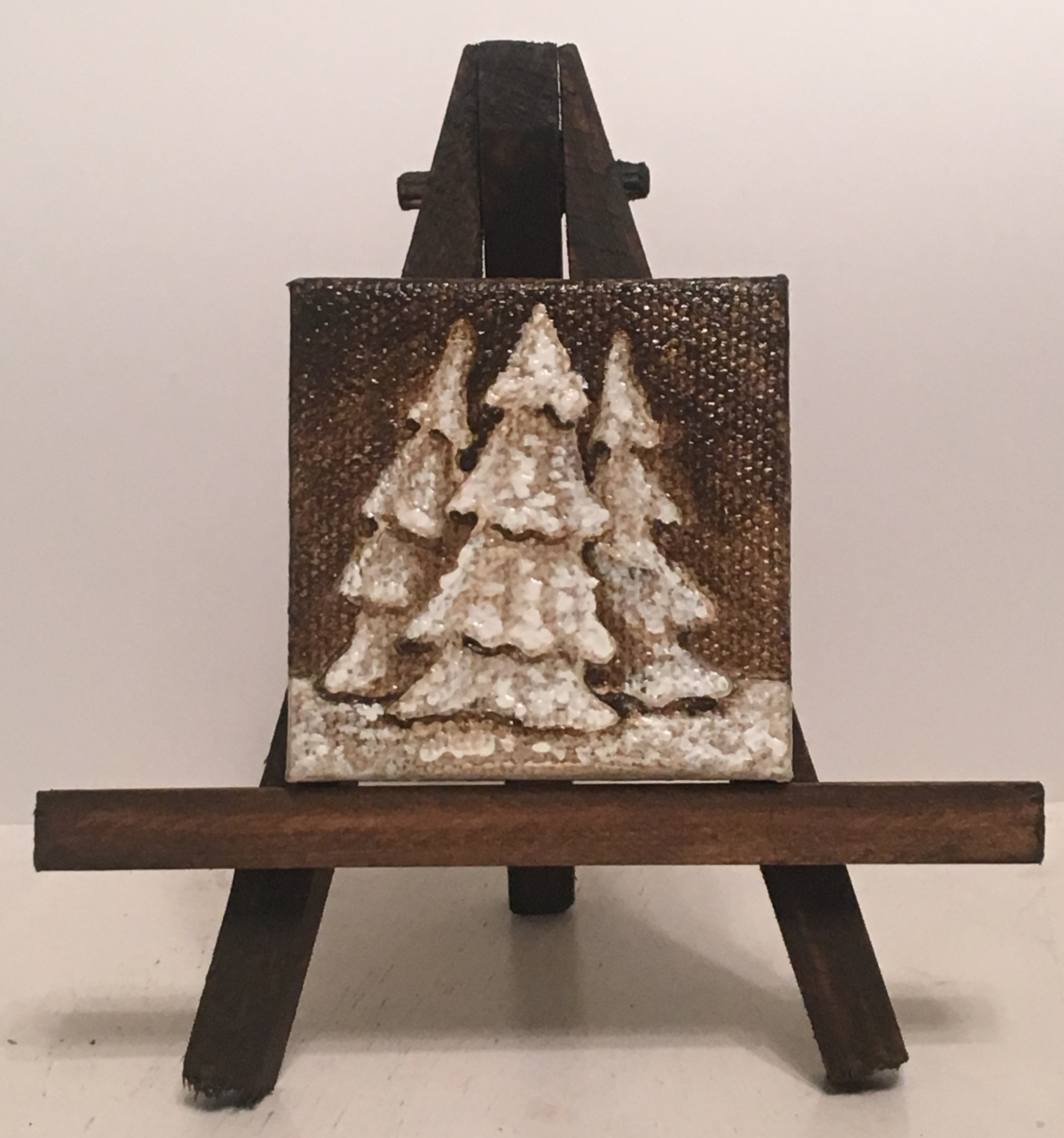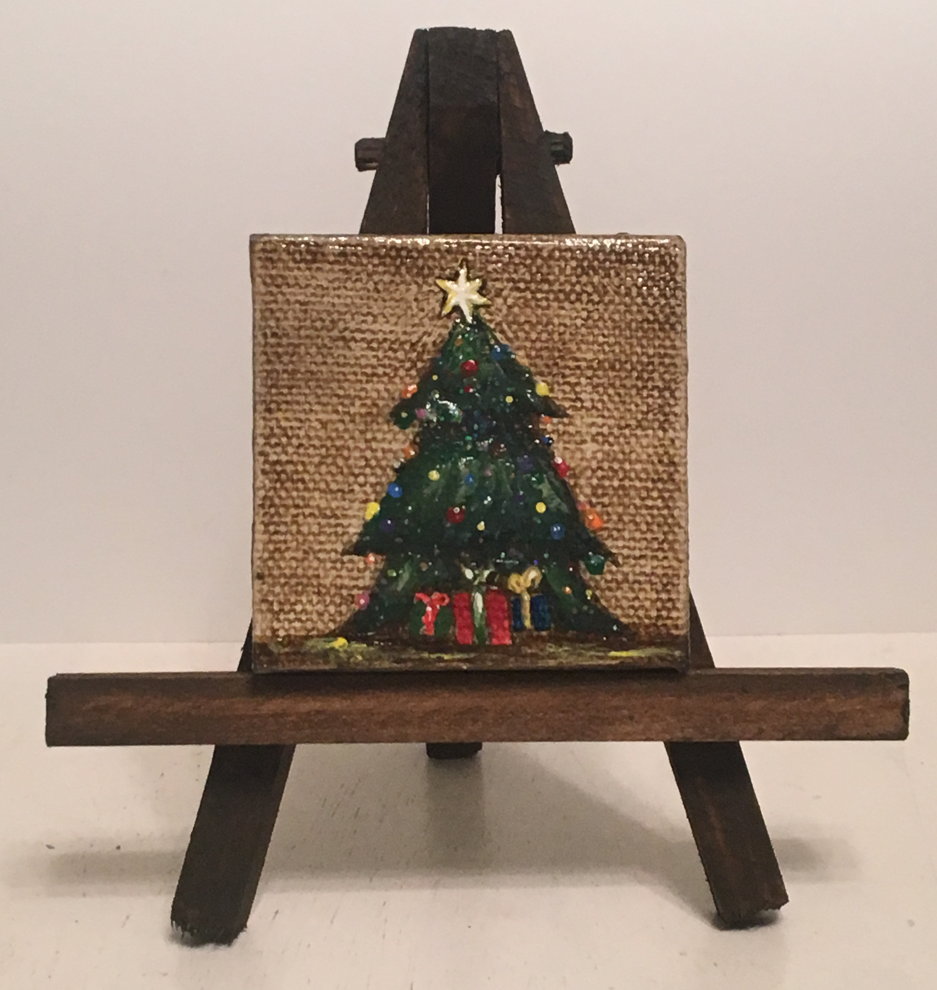 This is a 2 inch by 2 inch and hand painted - with the easel.